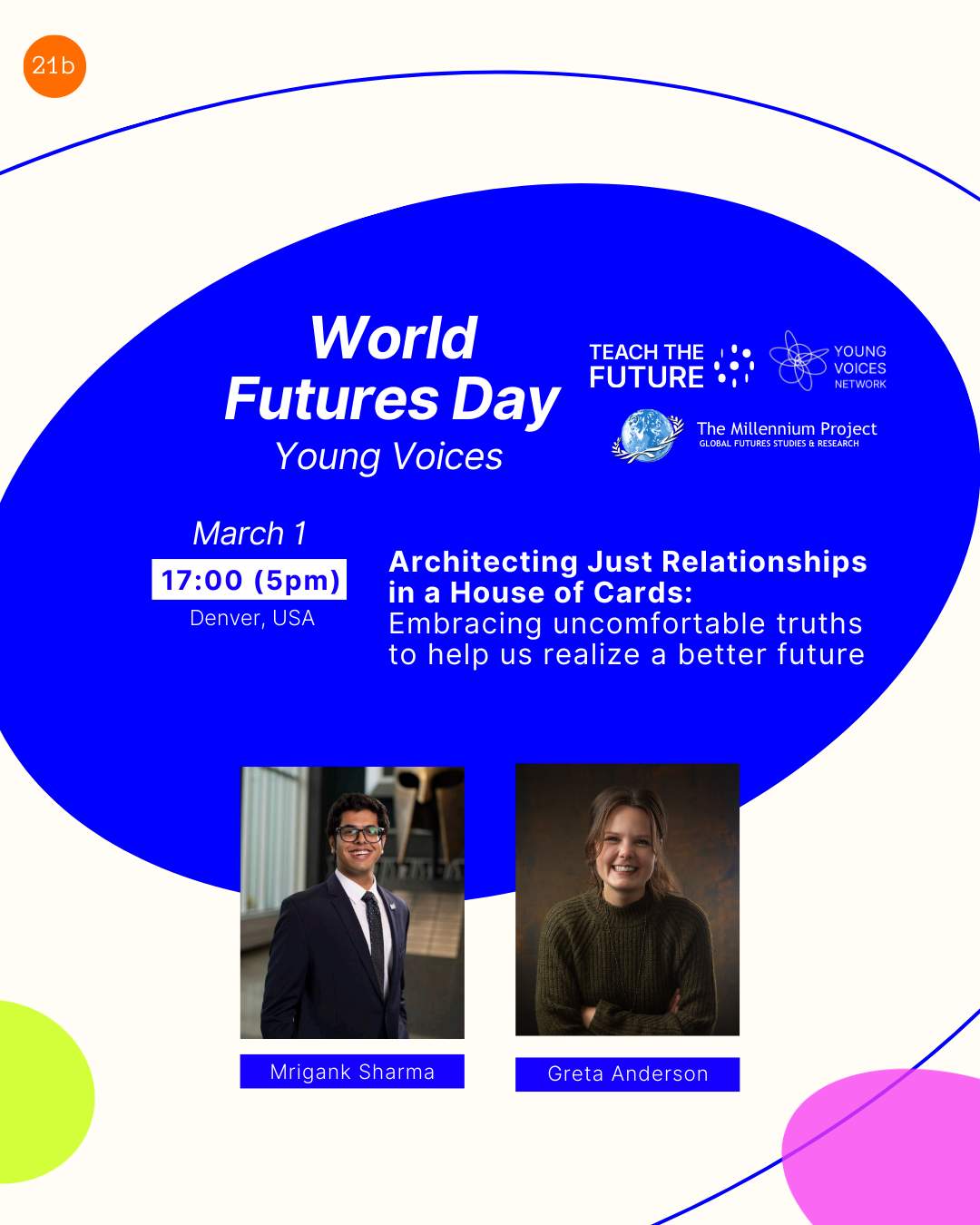 Two volunteers — an international student majoring in environmental studies and a design strategist devoted to the emergence of innovative and kind products — are engaged in this very effort. On World Futures Day, they will host a conversation with educators and youth. And we expect, in that room, unlike the chambers of our Capitol, that the breezes of confirmation will waft upon and refresh participants equally weary of evil. And in that moment, a nourishingly new and truthful way of speaking together so that we can take action to better live together in this world will be made manifest.
